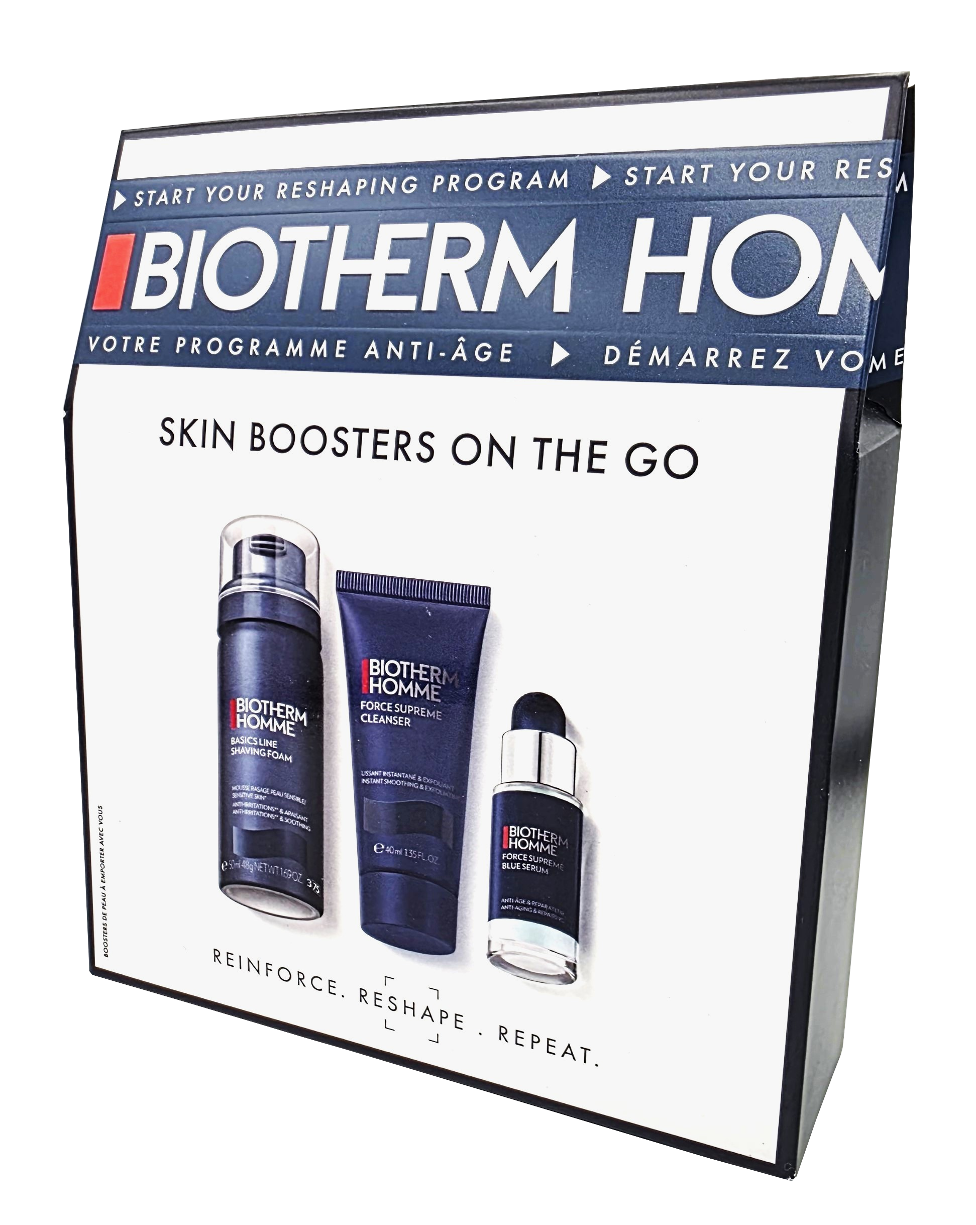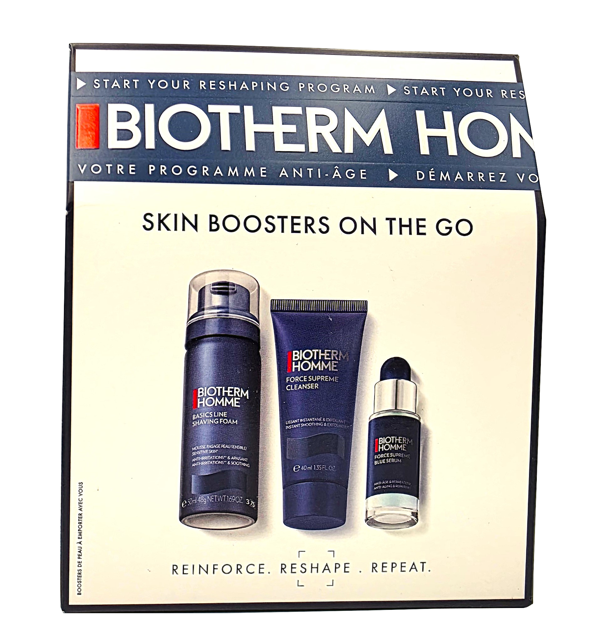 Biotherm Homme Skin Boosters On The Go – zestaw upominkowy to idealna propozycja dla mężczyzn, którzy cenią sobie skuteczną i szybką pielęgnację. Ten zestaw łączy w sobie trzy podstawowe produkty, które wspierają codzienną rutynę pielęgnacyjną